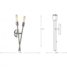 An iconic style design that adds dynamic flair to any room;Versatile space-aged inspired pieces that can be incorporated into a variety of interiors;Brushed Nickel finish;Wall bracket uses two 60W medium base bulbs (sold separately);Ideal for hallways, foy
