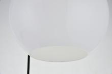 - Feature 2: spherical frosted white glass shade with open center for easy bulb replacement