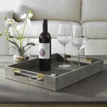 Tray is Covered in An Elegant Gray Faux Shagreen with Clear Acrylic Handles and Aged Gold Accents.